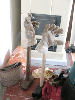 ![]() Und also sagte der große Mottek zum kleinen Mottek "Gute Nacht, kleiner Mottek, schlaf gut, denn morgen wird ein anstrengender Tag werden, für uns beide." Der kleine Mottek erwiderte "So sei es", drehte sich in eine bequeme Position und schlummerte friedlich ein. Auch das Schleifband schnarchte bereits friedlich vor sich hin; es wusste, seine Arbeit war getan, es durfte am nächsten Tag zu den anderen Schleifbändern in den großen Container umziehen, in dem es eine interessante Reise antreten und mehr von der Welt sehen würde. Die Handschuhs wiederum schliefen nicht besonders gut; zum Einen waren sie zum Trocknen den Motteks übergestülpt worden und froren in der kühlen Nachtluft, zum Anderen störte sie das friedliche Schnarchen der Mottekfamilie doch sehr in ihrer Nachtruhe. Auch Gedanken über die Aufgaben des nächsten Tages beschäftigten sie noch lange, denn im Gegensatz zu den Motteks waren die Handschuhs doch eher gedanken- und sorgenvolle Werkzeuge, die bereits einmal versagt und ihrer Trägerin ein vielfarbig schillerndes Handgelenk eingebracht hatten. Zwar hatten alle beteiligten und auch unbeteiligten Werkzeuge - selbst die, die die ganze Sache nur vom Hörensagen kannten und selbst nicht Augenzeuge waren - ihnen mehrfach versichert, es sei nicht ihre Schuld sondern die Unfähigkeit der Trägerin, mit einem Kuhfuß umzugehen, zudem deren sorgloser Umgang mit sich selbst, aber sie waren große Zweifler und suchten die Schuld gern bei sich selbst, um sich anschließend erst gegenseitig, dann im Kollektiv des Versagens zu bezichtigen. Der kleine Mottek hatte zudem seine liebe Not gehabt, sich vor den ungestümen Annäherungsversuchen des Meißels zu schützen; ständig rückte er ihm dicht auf die Pelle, was ihm alles andere als Recht war; schließlich sah er sich selbst als gewichtigen Entscheidungsträger und nicht den schlanken und ihm irgendwie viel zu filigranen Meißel. Beide hatten die Streitigkeit aber nach einen kurzen Handgemenge beigelegt und beschlossen, es am nächsten Tag einfach mal miteinander zu versuchen, denn es gab ja immer was zu tun. Dem friedlichen Beieinanderliegen stand nun nichts mehr im Wege. Alle miteinander waren sie froh, dass der Rest losgekratzten Bitumens, dem noch ein Dollarpreisschild anhaftete, woanders liegen musste; mit arroganten Stinkern, da waren sie sich einig, wollten sie nichts zu tun haben. Es war also viel los in der kleinen Werkzeugsiedlung vorm Kachelofen. Man macht sich keine rechte Vorstellung, was in so Werkzeugsiedlungen vor sich geht, solange man nicht genau hinhört. Tut man das erst einmal, stellt man fest, alles ganz normal - nicht anders als bei den Menschen auch.
